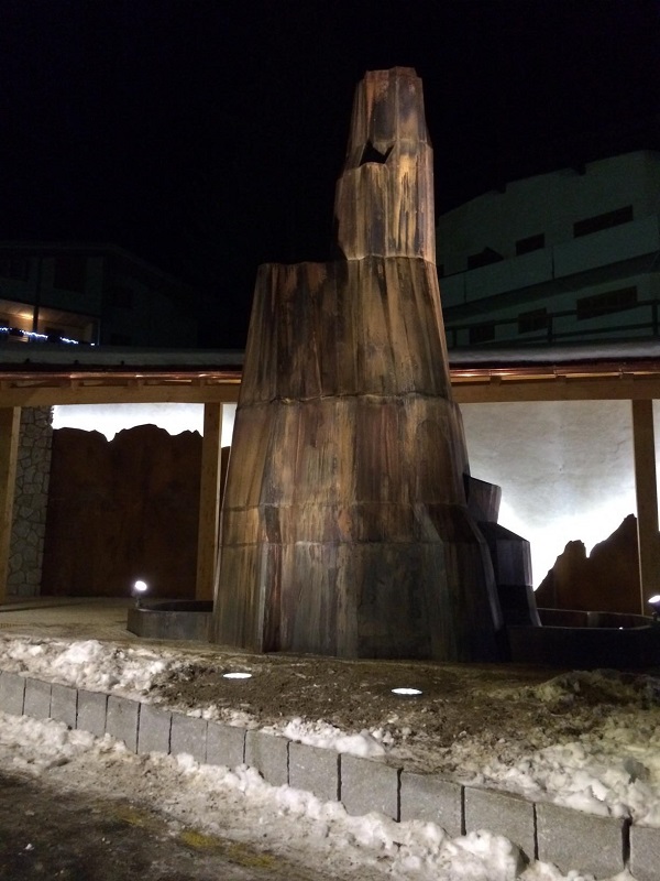 La scelta del materiale e del soggetto opera d’arte, vuole essere un chiara indicazione per il turista che arriva a Madonna di Campiglio, un assaggio di quel meraviglioso territorio che sono le Dolomiti di Brenta Patrimonio dell’Unesco e che potrà visitare durante la sua permanenza, significando allo stesso tempo la maestosità e la potenza dell’elemento naturale, la sua forza e la sua attrazione.