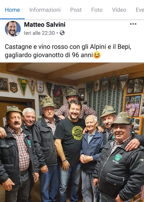 Castagne e vino rosso con gli Alpini, Salvini e Bepi Moro
