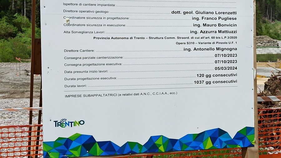 E’ notizia di qualche giorno fa che l’assessore provinciale Mario Tonina, in risposta al question time, abbia ammesso che l’appaltatore non abbia ancora completato il progetto esecutivo della “Circonvallazione di Pinzolo”, passaggio obbligato per dare avvio ai lavori. Ricordiamo che sul cartello posizionato il 7 ottobre in occasione dell’apertura del cantiere (e della visita del Ministro Salvini) si parla di data presunta dell’inizio lavori per il 5 marzo 2024. Successivamente, la ditta appaltatrice aveva chiesto e ottenuto una proroga di 45 giorni per la presentazione del progetto esecutivo, ma Tonina ha chiarito che il progetto esecutivo non è ancora stato consegnato.