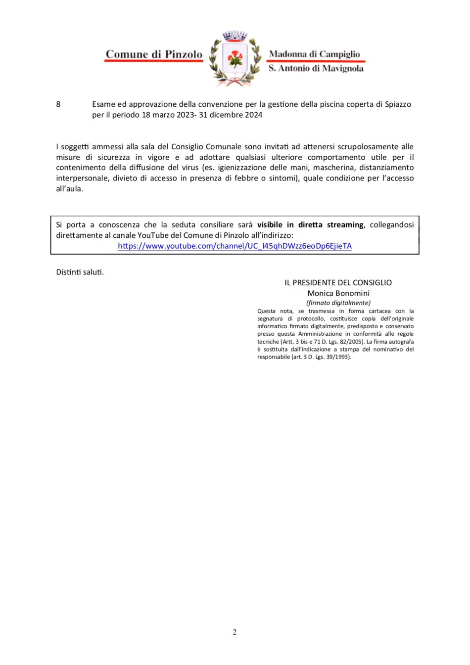 • Comune di Pinzolo – Convocazione comunicazione O.d.G. del 13-03-2023