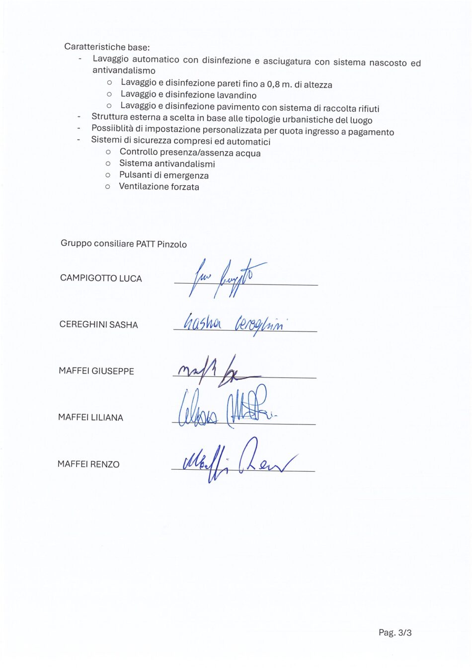 Attualmente, nei cimiteri comunali non sono presenti servizi igienici a disposizione di cittadini che si recano a far visita ai propri cari e dei turisti che ne fanno visita. La mozione propone l’installazione di strutture autopulenti per rispondere a questa esigenza.