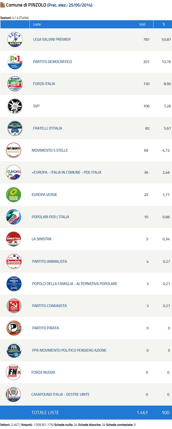 • Comune di Pinzolo: Risultati Elezioni Europee 2019