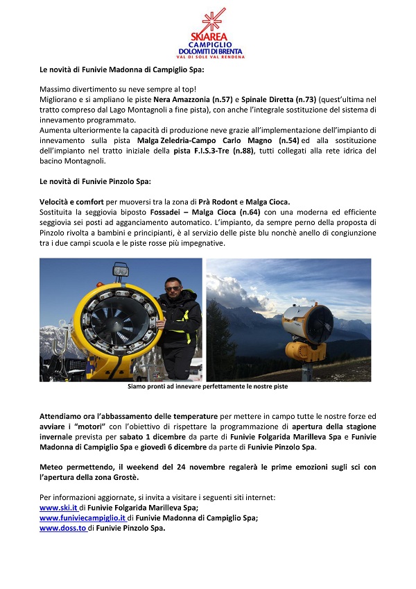 Skiarea Madonna di Campiglio: ecco le nuove stazioni della telecabina Nube d’Argento