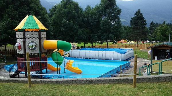 Ultimi ritocchi al nuovo piccolo lido di Pinzolo. Le due piscine, una per adulti e una per i più piccoli, sono state posizionate appena sotto l’anfiteatro che si trova alla Pineta, a fianco dell’area giochi.