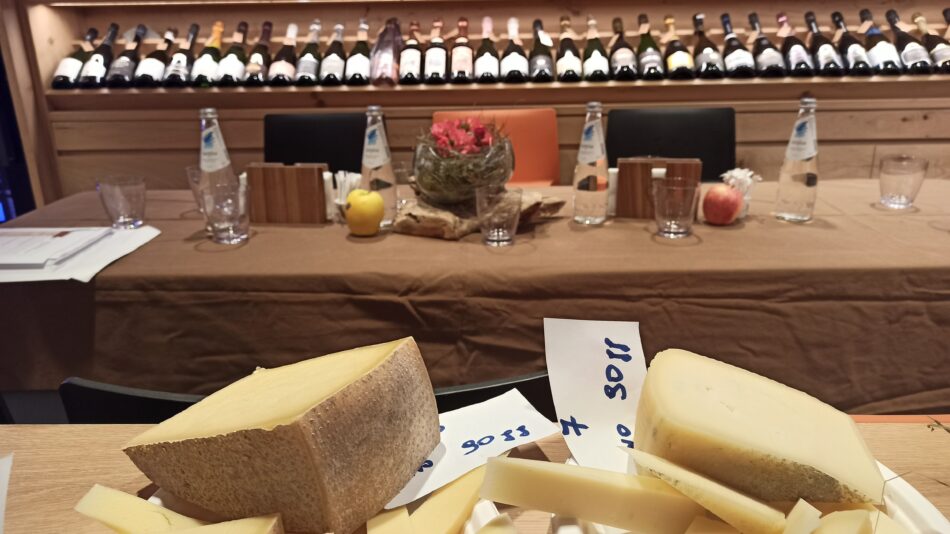 Si è svolta ieri, all’interno della settimana dedicata alle Giovenche di razza Rendena, la terza edizione del concorso “Formaggi di razza Rendena”, organizzata dalla Pro Loco di Pinzolo e dall’Associazione Allevatori di Razza Rendena ANARE. Al mattino presto la giuria, presieduta dal docente ONAF Giampaolo Gaiarin, ha proceduto alla valutazione dei formaggi in concorso, suddivisi nelle quattro categorie previste. Il lavorio dei giurati si è svolto nella sala “Bollicine di montagna” dell’Alimentari Caola,