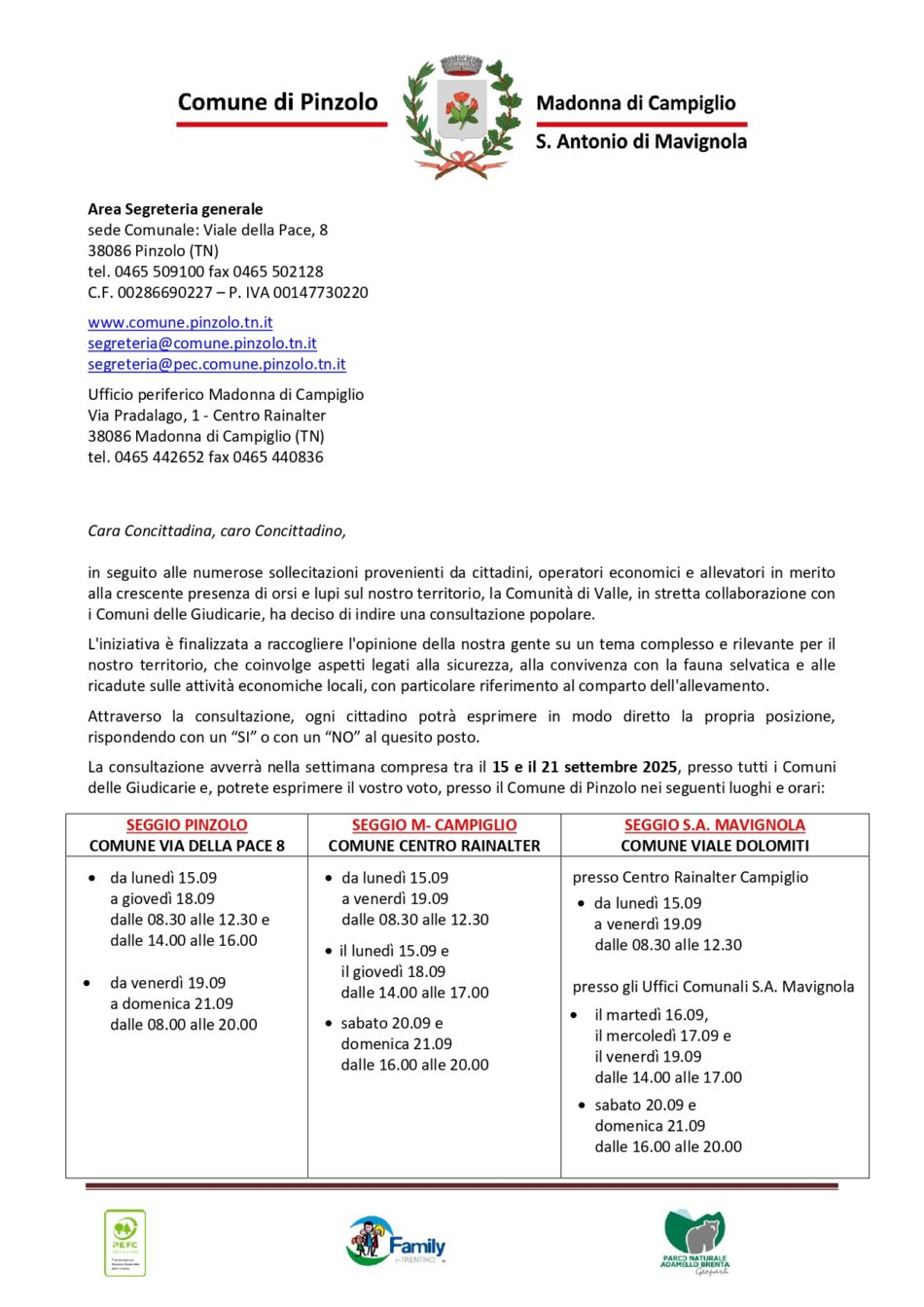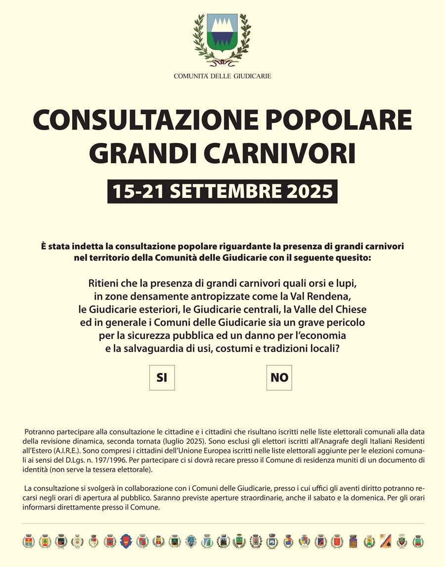 • CONSULTAZIONE POPOLARE GRANDI CARNIVORI 15-21 settembre 2025