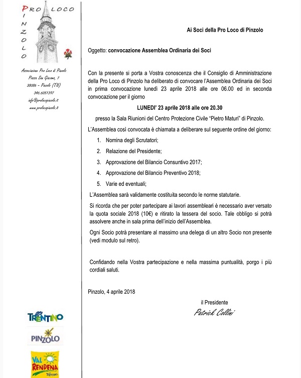 • Convocazione assemblea ordinaria dei soci