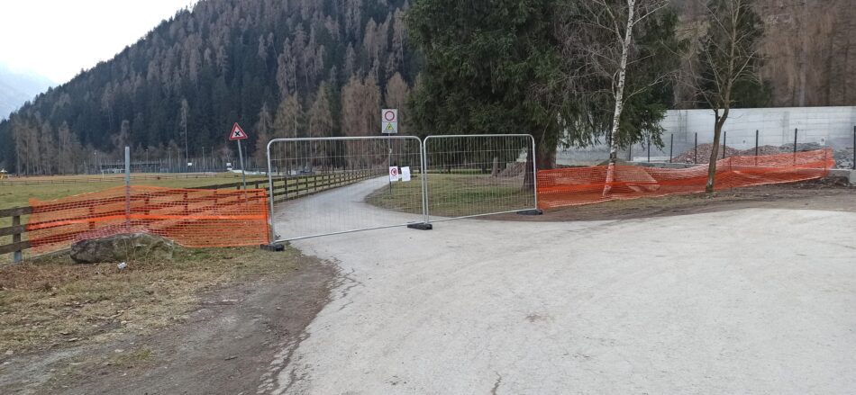 I tanti frequentatori della ciclopedonale che dalla Pineta di Pinzolo porta alla piana di Caderzone hanno trovato da ieri una brutta sorpresa. A causa del necessario collegamento con mezzi dei due cantieri per la realizzazione della sospirata circonvallazione di Pinzolo.