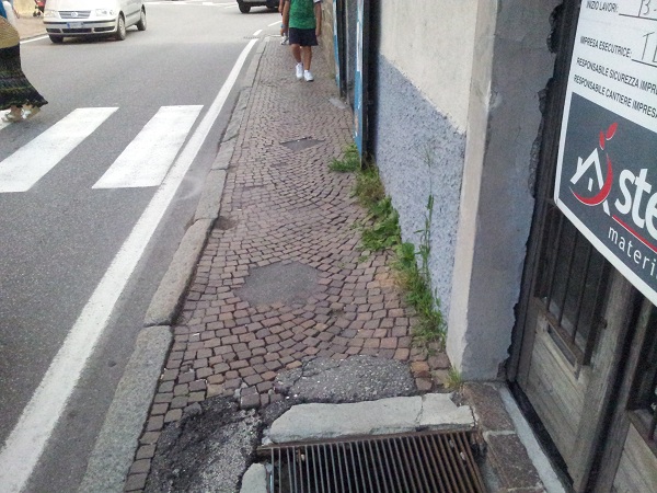 Ecco come si presentava, il 16 agosto scorso, un tratto di marciapiede a pochi passi dalla chiesa di San Lorenzo, nel centro di Pinzolo. No comment.