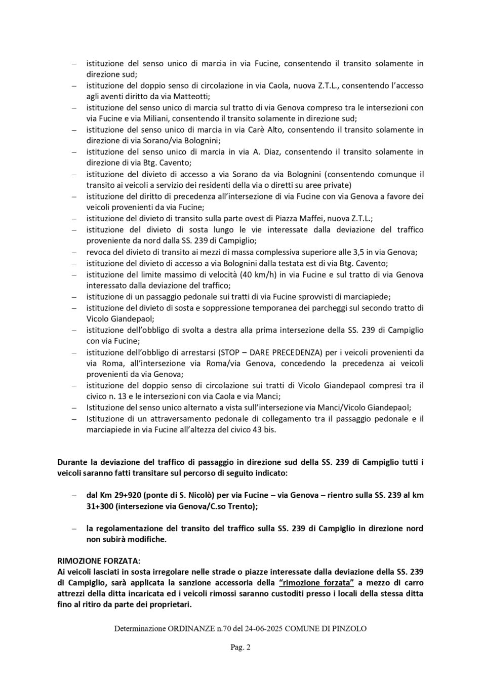 Disciplina traffico nelle vie e piazze di Pinzolo per la deviazione della SS. 239 di  Campiglio e l’istituzione della Z.T.L. temporanea di Pinzolo centro, estate 2025