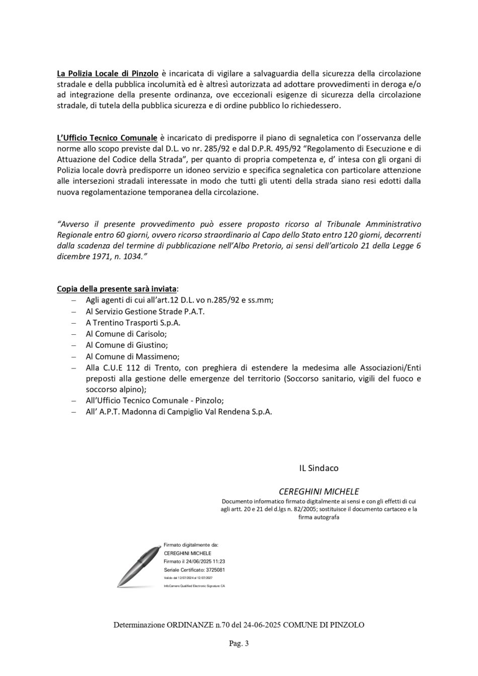 • Disciplina traffico nelle vie e piazze di Pinzolo per la deviazione della SS. 239 di Campiglio e l’istituzione della Z.T.L. temporanea di Pinzolo centro, estate 2025