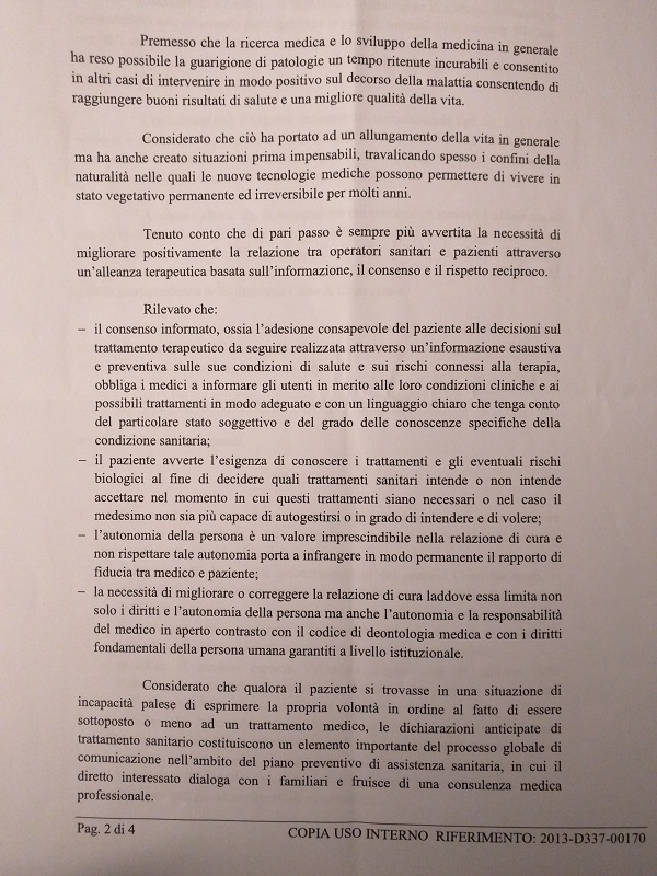 Una ancor più scarsa considerazione dello stesso suo personale medico che senza questo civile strumento non potrà migliorare la relazione tra operatori sanitari e pazienti attraverso una sinergia terapeutica basata sull’informazione, il consenso e il rispetto reciproco.