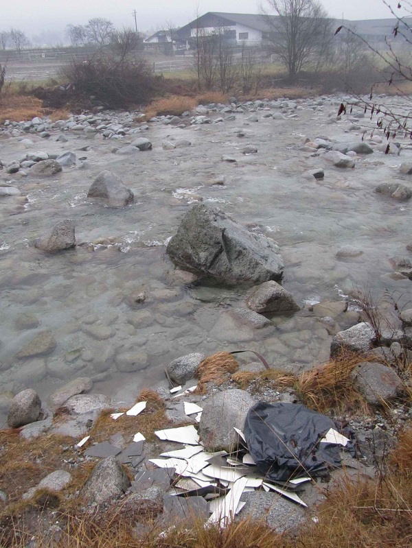 La piccola discarica lungo il Sarca (foto Giorgio Valentini)