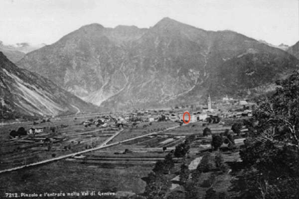 Pinzolo – Foto di fine Ottocento (in rosso l’edificio rosa che verra’ abbattuto)