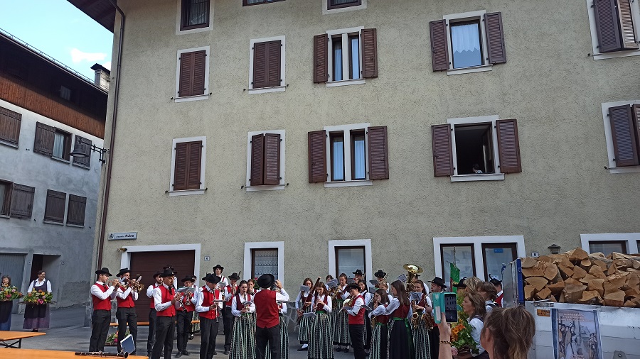 Dopo alcuni anni di stop a causa della pandemia, è tornata ieri la Sagra di Ruina, uno dei tre rioni di Pinzolo. Alle 17 la piazza Ruina è stata animata da una apprezzata esibizione della Banda Comunale di Pinzolo. Al termine della santa messa celebrata nella chiesa di san Lorenzo, circa 200 persone hanno voluto cenare nello spazio allestito nel cuore del rione, con un menù tipico preparato dal servizio catering “La Contea” e distribuito dai volontari della Pro Loco: “pagnòc, capus concè, torta di erbi e bivar”.