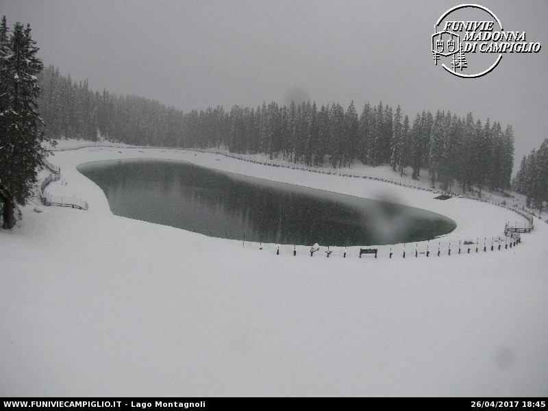 Decisamente in ritardo, la neve è tornata a imbiancare le montagne, anche a quote relativamente basse. Ecco le immagini in diretta delle webcam al lago Montagnoli e del centro di Madonna di Campiglio.