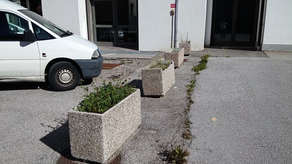 Ecco come si presentava in agosto il piazzale antistante la Canonica di Pinzolo, a pochi metri dall’ufficio dell’Apt e dal Paladolomiti.