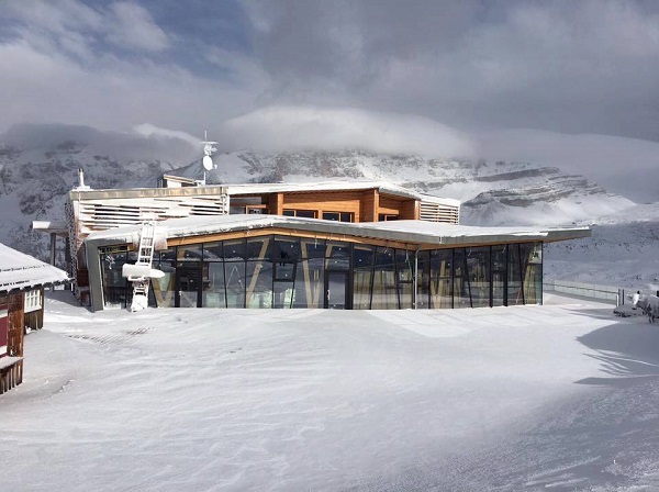 Ecco la prima immagine del nuovissimo rifugio Chalet Spinale Fiat. Contemporaneo e di stile, attento alla sostenibilità ambientale, il nuovo chalet a 2.100 m è quasi pronto e la nevicata di domenica lo rende ancora più bello. Ampie vetrate, pietra dolomia e legno i materiali utilizzati, ristorante e bar con panorama mozzafiato, la nuova struttura ha 7 suite, per una capacità di accoglienza di 18 posti letto, con un piccolo centro wellness dedicato e una sala lettura.
