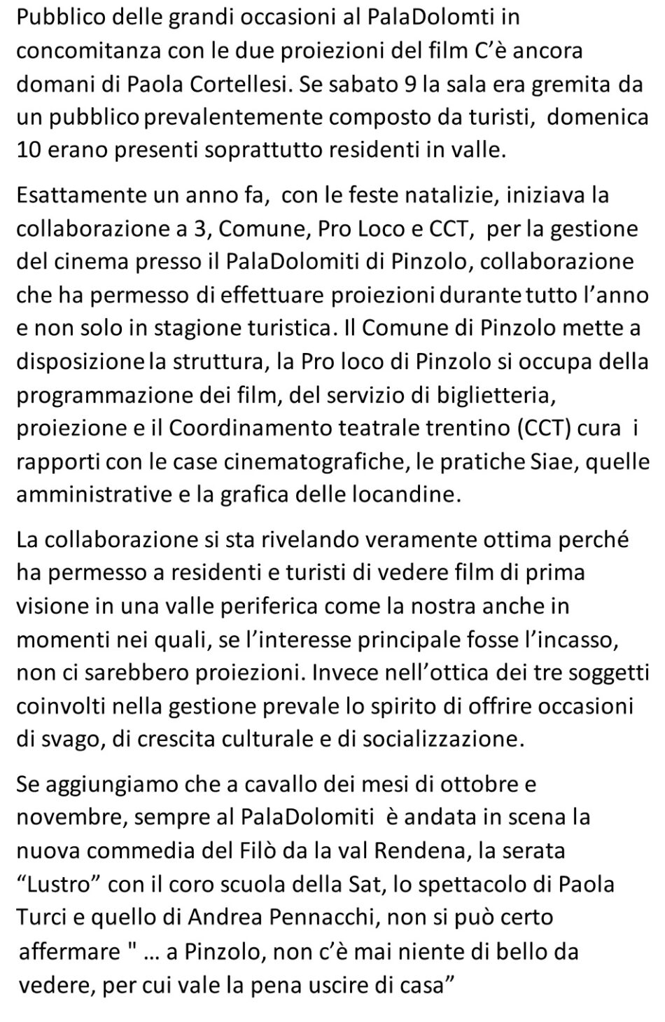 E per chi l’avesse “perso”, ricordiamo le ultime due proiezioni del film “C’è ancora domani” previste durante il periodo natalizio: