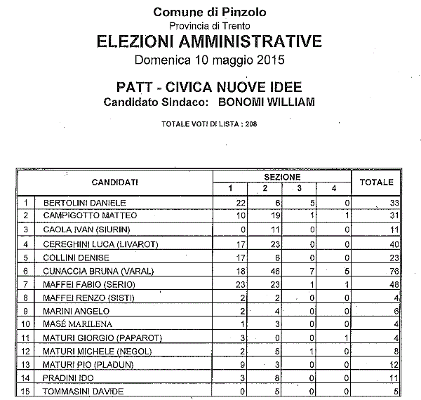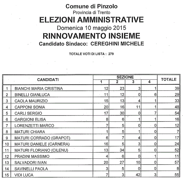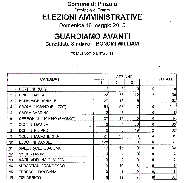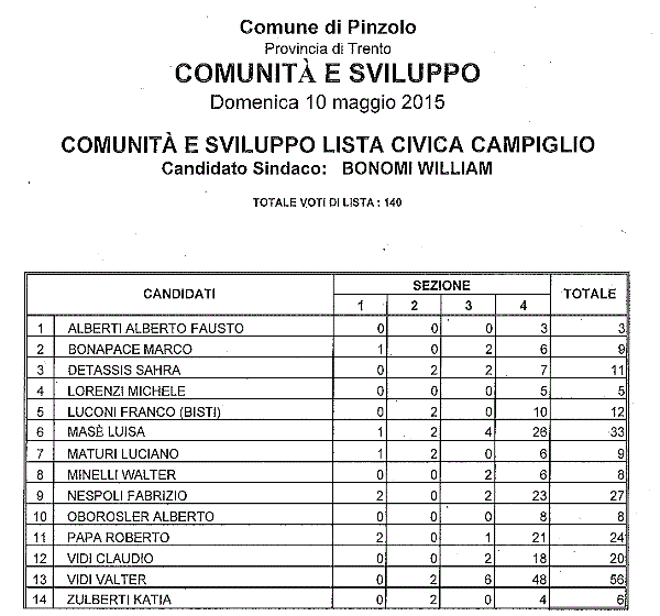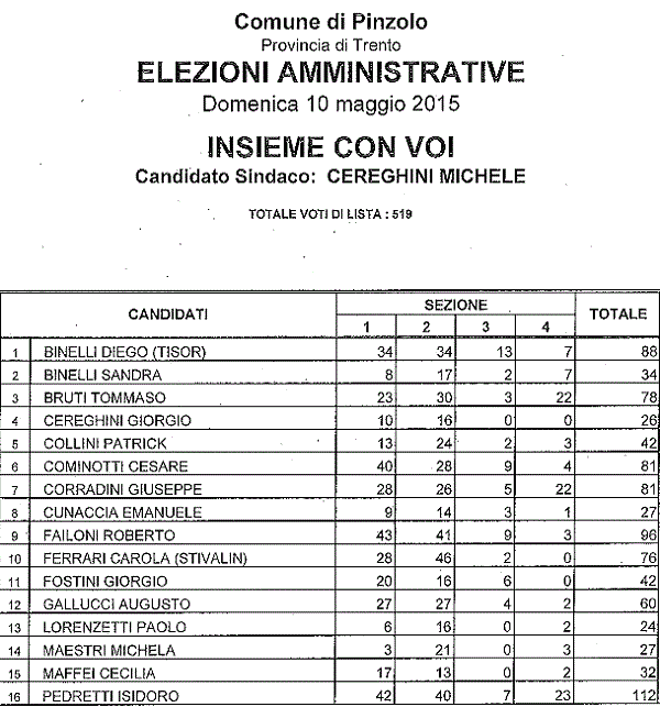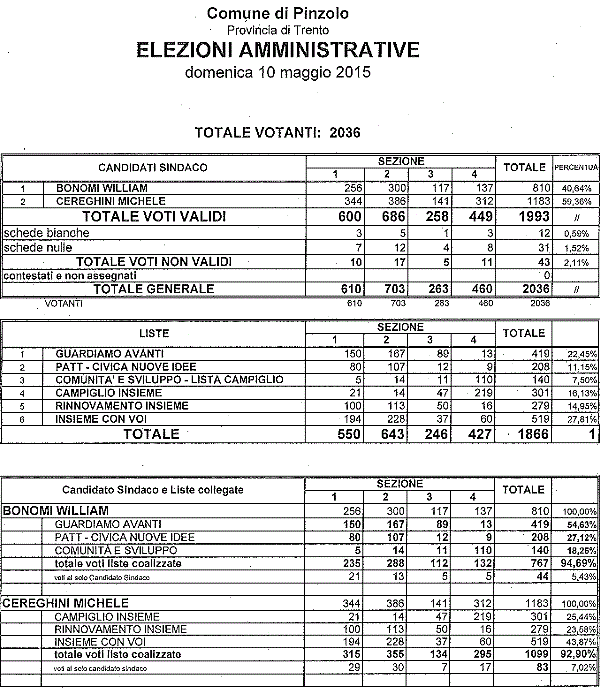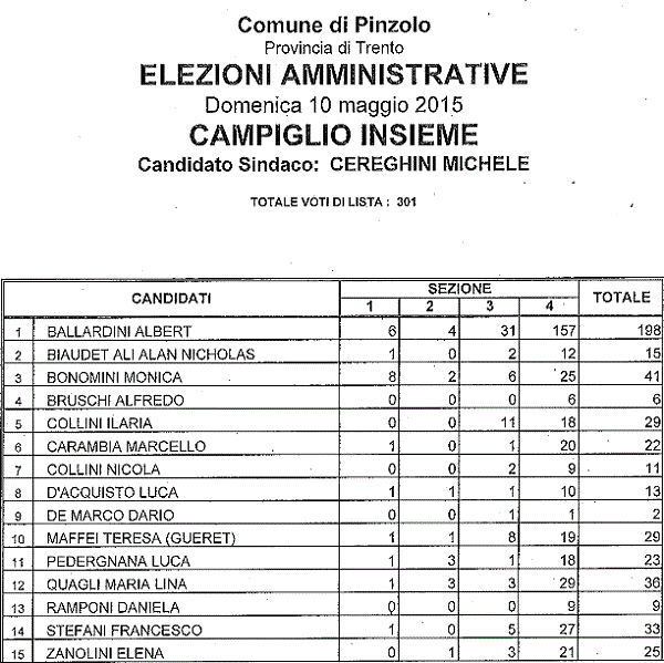 • Elezioni comunali 2015 a Pinzolo: risultati in dettaglio