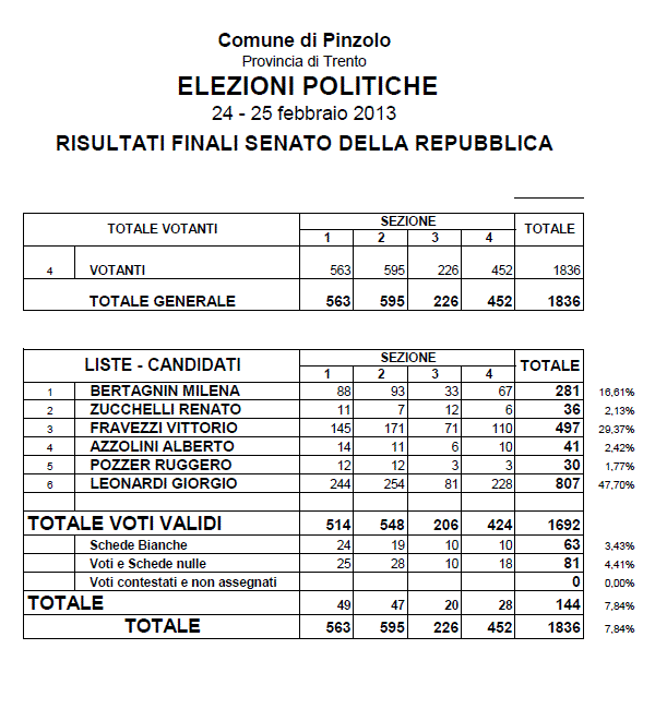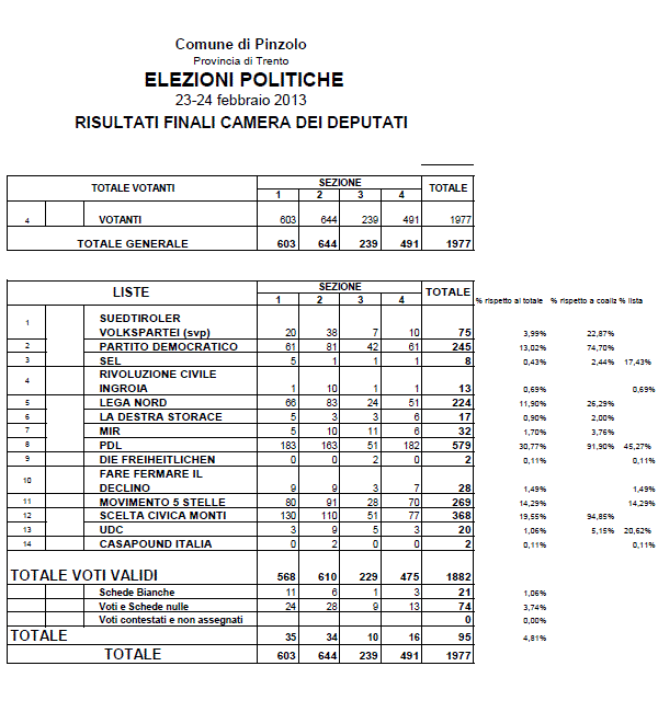 • Elezioni Politiche 2013: Risultati alla Camera e al Senato