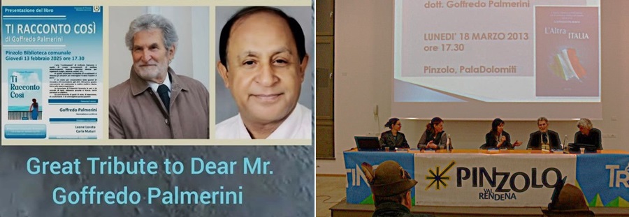 Ora una singolarità, con la notizia rimbalzata fino in India. L’intellettuale indiano Krishan Chand Sethi – fine scrittore, artista e manager che divide la vita tra l’India e il suo buen retiro in Nuova Zelanda –, appresa dai social network la notizia dell’evento culturale a Pinzolo, attraverso gli stessi mezzi ha rivolto a Palmerini un tributo di apprezzamento per la sua opera di scrittore. «Un grande tributo di stima al caro Goffredo Palmerini – scrive il dr. Sethi -, rinomato scrittore e icona dei media d’Italia e all’estero. Siete testimoni, nel mondo della letteratura e del giornalismo, di una nuova altezza che raggiunge la scrittura, che si distingue per eccellenza. Sono orgoglioso di rendere il mio grande tributo a Goffredo Palmerini, un genio creativo che rappresenta la letteratura e i media. La celebrazione del suo libro “Ti racconto così”, che sarà presentato il 13 febbraio 2025 presso la Biblioteca Comunale di Pinzolo, non è solo un evento, ma un benvenuto a uno scrittore le cui parole parlano attraverso il tempo e la cultura, viaggiando attraverso la geografia. Palmerini è al contempo un cronista della storia, un custode delle storie, e un guardiano di molti ricordi che devono ancora essere creati. Ogni frase di questo libro intesse un magnifico tessuto di esperienza umana, dando vita a luoghi, persone ed emozioni. È un potere che nessuno ha posseduto così bene nell’equilibrare le narrazioni in modo armonioso, nell’intrecciare prospettive, nell’evocare lo spirito di un’epoca e nel conferire alla sua opera un impatto che sarà visibile per le generazioni a venire. C’è ancora molta strada da percorrere. L’opera di Palmerini rientra in una categoria che è come viaggiare nei corridoi del tempo, attraverso una lente invisibile agli occhi e al cuore umano. Riporta il battito del cuore della civiltà e riaccende la connessione con l’umanità. L’intera storia è splendidamente scritta con le voci di più continenti, ma allo stesso tempo dà vita a tutti quei momenti che sarebbero potuti facilmente perdersi nei venti del tempo. Ancora una volta congratulazioni a Goffredo Palmerini per questo prestigioso evento, che si terrà tra breve tempo.» Un tributo assai generoso verso Palmerini, forse ben oltre i meriti, che tuttavia sottolinea il rapporto di stima reciproca dell’intellettuale indiano con il giornalista e scrittore abruzzese.