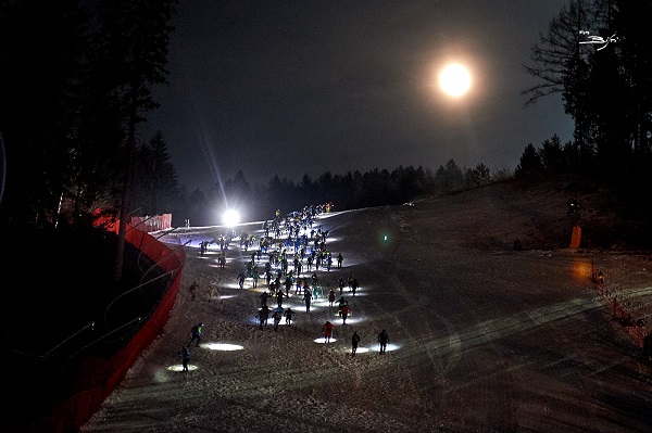 Una splendida notte di luna piena ha fatto da suggestiva cornice alla quarta edizione della Pinzolo Vertical up, la durissima gara per skyrunner e sci alpinisti che ieri sera hanno sfidato al contrario, dal basso verso l’alto, la Tulot Audi quattro, una delle piste nere più difficili e affascinanti dell’arco alpino. Pendenze che raggiungono il 69%, 900 metri di dislivello e 2.600 metri di lunghezza da località Tulot a malga Cioca. Questi, in sintesi, i dati della sfida che ha visto protagonisti, a Pinzolo, quasi 200 atleti. Oltre 700 se si calcolano anche i partecipanti al concomitante raduno per “ciaspole” e sci d’alpinismo dedicato a Toni Masè.