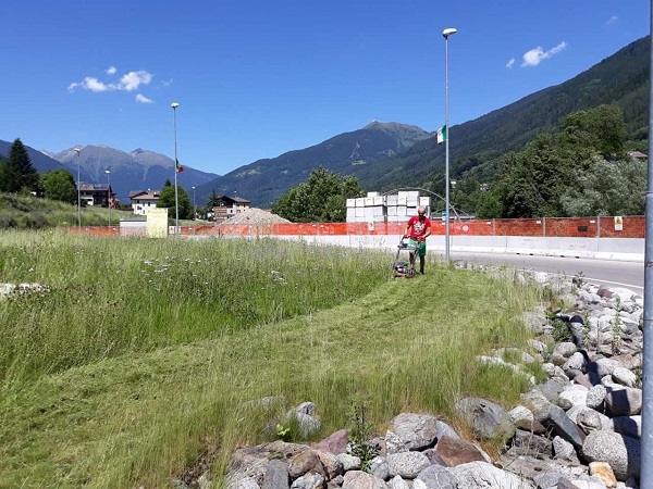 Di fronte all’assoluto immobilismo di chi avrebbe l’obbligo di prendersi cura del problema, Sandro Ducoli, assessore del Comune di Strembo, ha rotto gli indugi e, armato di mezzi propri, ha proceduto al taglio dell’erba nell’aiuola all’entrata del suo paese.