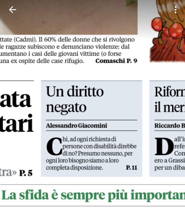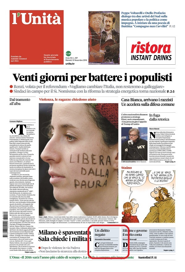 Giacomini su L’UnitÁ : Un amore impossibile un diritto negato