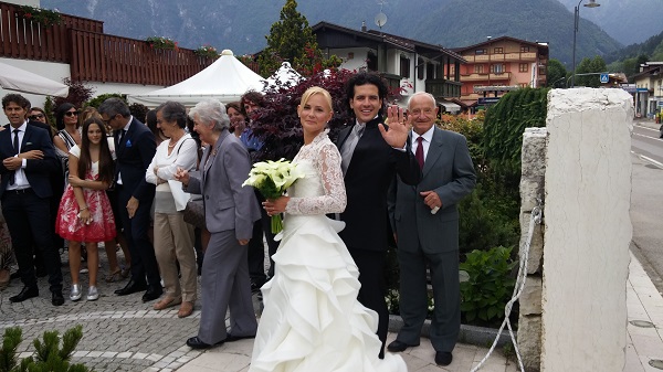 Pomeriggio di festa ieri a Pinzolo. Emanuele Masè, figlio di Benny e Margherita, notissimi albergatori della zona, è convolato a nozze con la bellissima Sanna Maarit Remes, giovane maestra di pattinaggio arrivata dalla Finlandia. Tantissimi gli invitati che hanno seguito la cerimonia religiosa celebrata nella chiesa arcipretale di Pinzolo da don Flavio, e che hanno accompagnato in corteo la giovane coppia fino all’Olympic Royal Hotel. Al piccolo rinfresco allestito all’esterno, è seguita poi la cena per i 250 ospiti nella splendida sala dell’hotel che è stata appena ampliata.