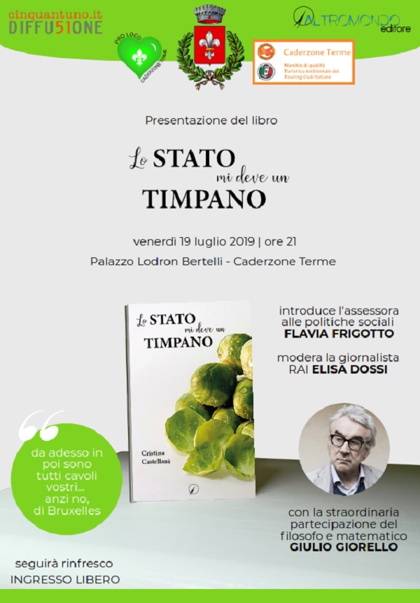 Cristina Castellani Giudicariese doc, venerdi 19 prossimo presenterÁ in prima assoluta nazionale a Caderzone Terme la sua coraggiosa testimonianza, sarÁ moderata dalla giornalista RAI Elisa Dossi conduttrice del TG 3 serale, con la straordinaria partecipazione del noto filosofo il Professor Giulio Giorello.