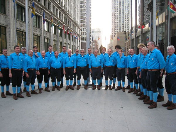 La tabella ci mette letteralmente in marcia per la Columbus Parade, una grande sfilata per ricordare la scoperta dell’America e una festa degli Italiani che si celebra in molte città americane. Anche a Chicago si svolge il tradizionale corteo di carri tricolori e gruppi di ogni sorta e regione di provenienza. Anche il coro non può non partecipare e si presenta con la sua caratteristica divisa in Balbo Drive, accompagnato da cinque dame in veste folkloristica, portando così il suo tocco di azzurro ad una parata già di per sé colorata e stravagante, in un clima estivo che invoglia ad indossare infradito e bermuda piuttosto che zuava, scarponi e scialli di lana.