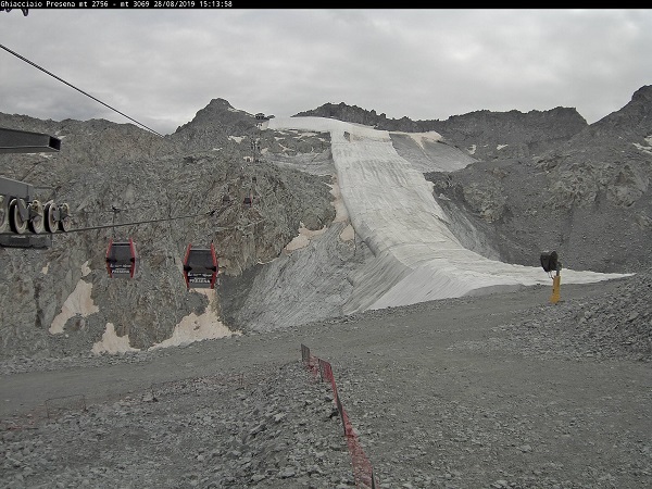 Dal 2009, alla fine della primavera, una parte del ghiacciaio Presena viene ricoperta con un telo geotessile dello spessore di 4 mm che racchiude delle micro bolle di aria e ostacola il passaggio dei raggi del sole e la trasmissione di calore alla neve sottostante. La superficie coperta è di circa 120.000 metri quadrati (in autunno i teli vengono recuperati). Il costo, a carico delle Funivie Presena, è di circa 100.000 euro all’anno (oltre a costo dei teli). Se non si fosse intervenuto con i teli, oggi il ghiacciaio del Presena sarebbe solo un lontano ricordo. Infatti dove il telo non è stato posizionato, il ghiacciaio è quasi completamente sparito. Il posizionamento dei teli è un’esperienza che in Trentino si sta facendo anche in Marmolada, per conservare le zone funzionali all’attività sciistica. Il confronto con un’immagine degli anni Sessanta è impressionante.