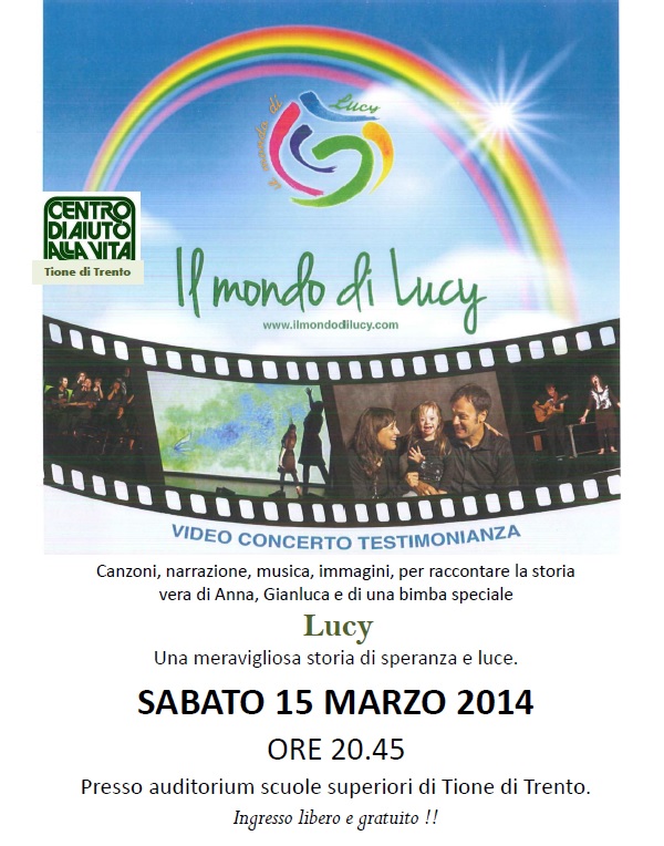 “Il mondo di Lucy” spettacolo che sta facendo il giro d’Italia, va in scena sabato 15 marzo alle 20.45 all’auditorium delle Scuole Superiori di Tione. Canzoni, narrazione, musica, immagini, per raccontare la storia vera di Anna, Gianluca e di una bimba speciale Lucy. Una meravigliosa storia di speranza e luce, adatta a tutti. Ingresso libero e gratuito, proposto dal Centro Aiuto alla Vita di Tione. Si narra una scelta fatta per amore, che ha generato amore. Intensi alcuni passaggi della testimonianza dei due genitori. Il 4 marzo 2009 Anna fa un’ecografia: "Piccolina, sembri così perfetta lì, rannicchiata nel tuo caldo nido… Vediamo le tue manine, le tue dita, la spina dorsale, sentiamo battere il tuo cuore. La tua minuscola bocca, il corpicino pieno di vita. Ma qualcosa non va. Ci manca la terra sotto i piedi…il nostro cuore perde un colpo. Sembra che ci sia una malformazione nella testa”. Il medico osservando l’ecografia comunica: “C’è un problema. Lucy potrebbe avere la sindrome di Dandy Walker". “Non abbiamo il coraggio di domandare nulla. Restiamo immobili, atterriti…il cervelletto non è completo. Se la diagnosi sarà confermata, saremo ancora in tempo per decidere. Decidere?…Abortire … far cessare questa piccola vita. Potevamo scegliere il buio, potevamo allontanare tutto in un attimo, con un semplice no. Abbiamo scelto la vita, la vita di Lucy. E Lucy ha illuminato la nostra”. Lo spettacolo nasce da pensieri e riflessioni nati da un incontro, dall’abbraccio di chi ci sta a fianco, da un istintivo bisogno di descrivere quello che sta succedendo. Con il desiderio profondo, impresso nell’anima, di poter forse, un giorno, essere di aiuto a qualcuno”. Per maggiori informazioni www.ilmondodilucy.com