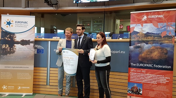 Il Parco Naturale Adamello Brenta ha ottenuto per la terza volta la Carta Europea del Turismo Sostenibile di Europarc Federation. L’annuncio era arrivato a ottobre e la certificazione è stata consegnata nelle mani dell’assessore Matteo Masè e dell’ingegner Valentina Cunaccia a Bruxelles giovedì scorso 29 novembre. Durante la cerimonia solenne che si è tenuta nella prestigiosa sede del Parlamento europeo, erano 19 i parchi d’Europa ad essere premiati, chi per la prima volta, chi per la seconda e solo l’Adamello Brenta per la terza.