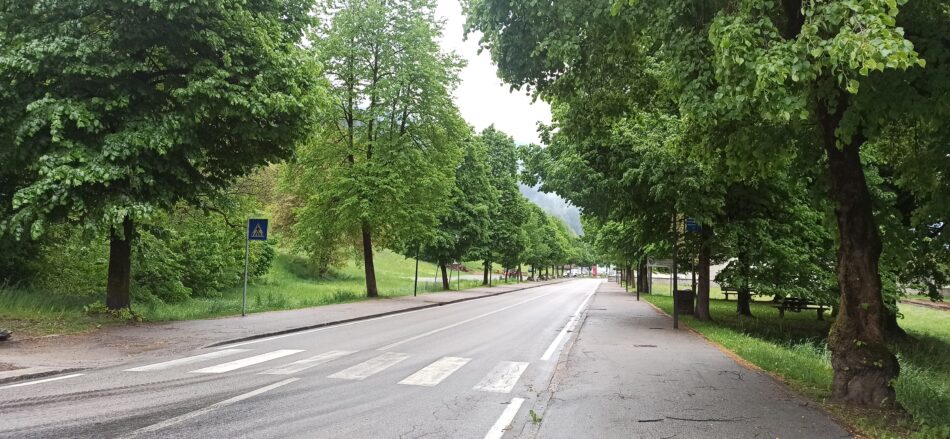 Osservando la fotografia, si nota come la crescita rigogliosa delle piante stia contribuendo a valorizzare anche il tratto finale del viale Bolognini, ovvero la strada statale situata a nord di Pinzolo, rendendolo sempre più gradevole e armonioso.