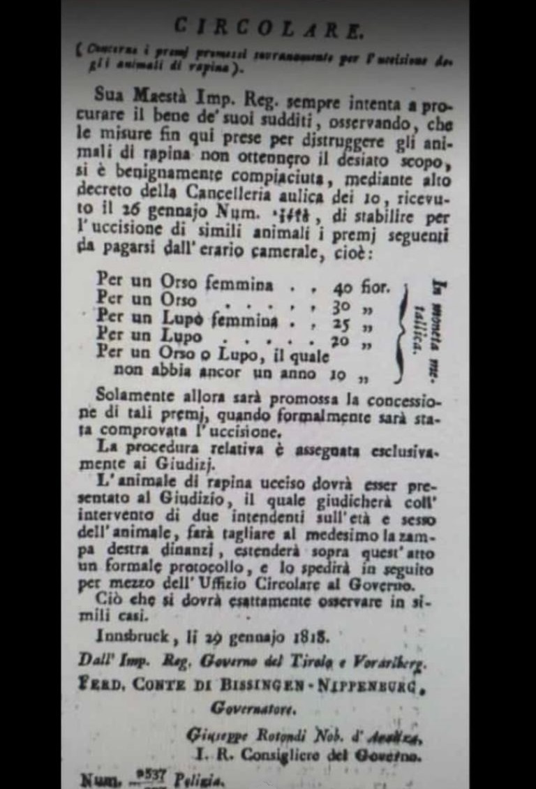 • Impero Austro-Ungarico: Premi in Fiorini per l’uccisione di orsi e lupi