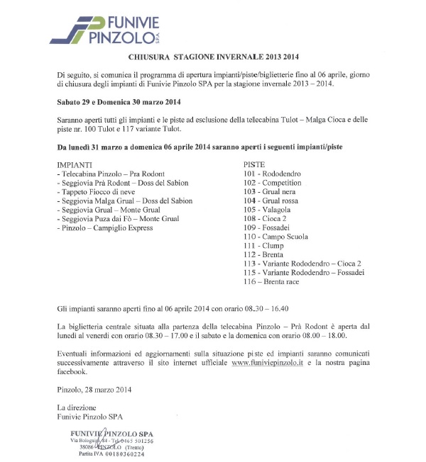 Impianti aperti a Pinzolo fino a domenica 6 aprile