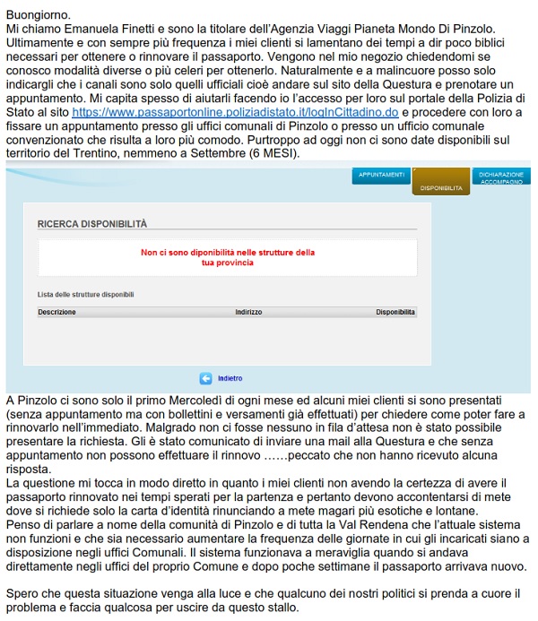 • Impossibile rinnovare il passaporto a Pinzolo?