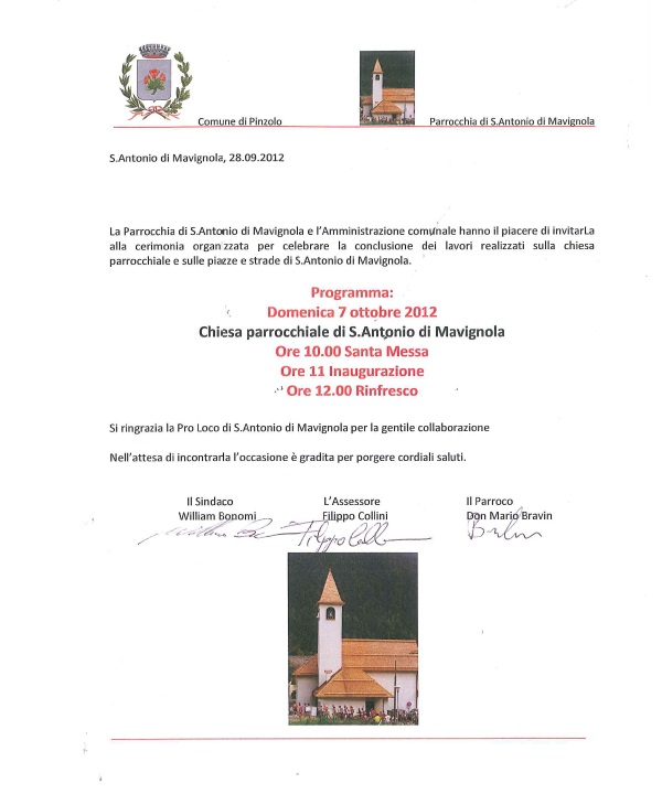 • Inaugurazione Chiesa di Sant’Antonio di Mavignola
