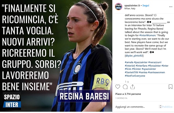 Le giocatrici e lo staff tecnico di Inter Women da giovedi sera, 1 luglio, sono in ritiro a  Pinzolo, come testimoniato anche da alcune stories su Instagram da parte del gruppo e di Regina Baresi. La squadra rimarrÁ in ritiro in val Rendena fino al 9 agosto, giorno in cui chiuderÁ la preparazione pre-campionato con un’amichevole contro l’ACF Trento Clarentia (Serie C). La squadra è ospitata presso l’hotel Corona di Pinzolo.