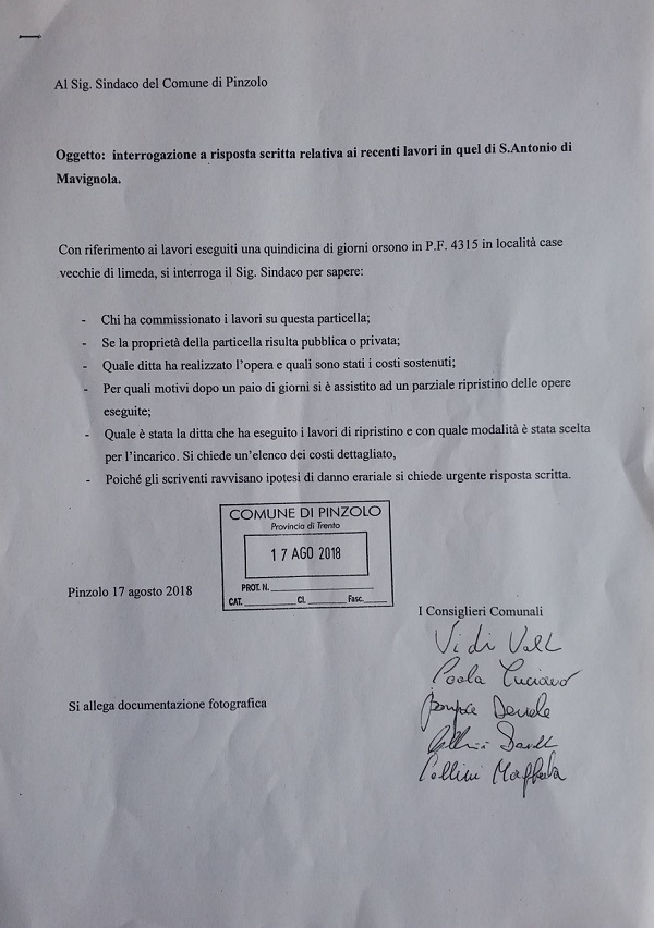 • Interrogazione relativa ai lavori a Mavignola