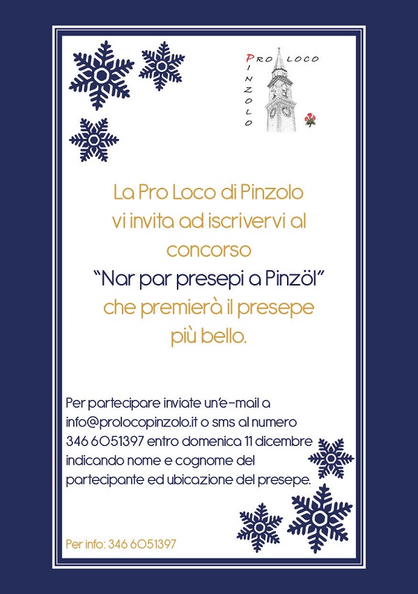• Iscrizioni al concorso Nar par presepi a PinzÁ¶l