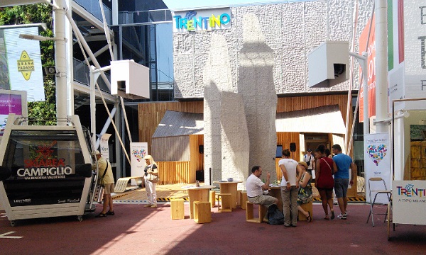 Nel caldo degli spazi espositivi è apparsa infatti una moderna cabina di una delle Ski aree del Trentino – a rappresentare l’intero sistema dei caroselli trentini – attirando l’attenzione delle migliaia di persone che percorrono il cardo tra la Piazza Italia e l’Albero della vita, simbolo dell’esposizione universale.