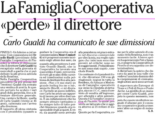 • La Famiglia Cooperativa ‘perde’ il direttore