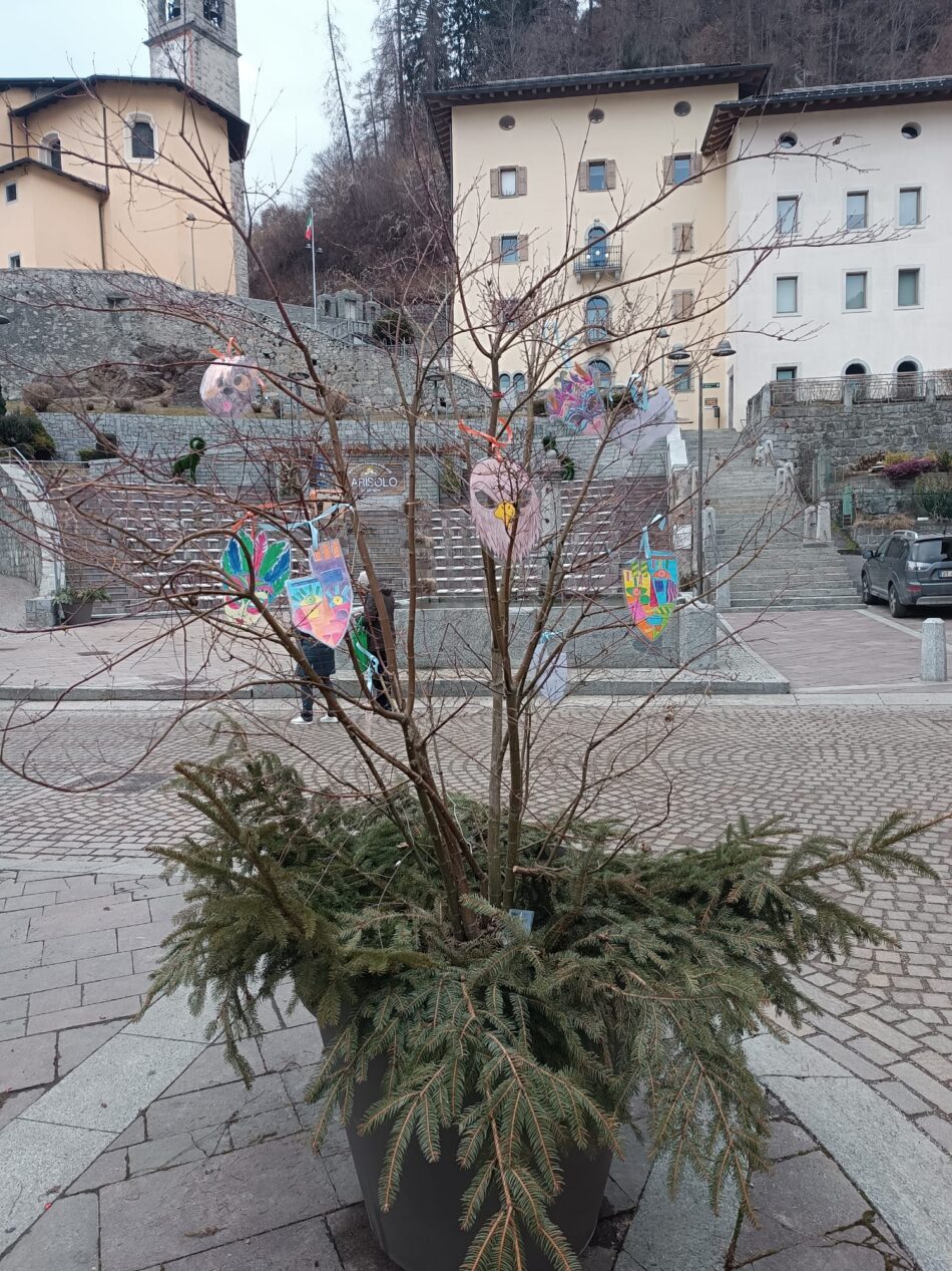 I piccoli hanno realizzato bellissimi disegni che sono stati poi appesi agli alberi di Piazza Due Maggio, colorando la piazza e portando un’atmosfera di festa nel cuore del paese.