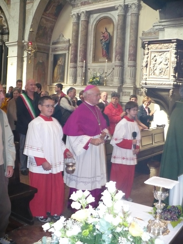 Puntualissimo, alle 15.30 il nostro Vescovo entrava in Chiesa, dove ad attenderlo non c’era la grande folla che io immaginavo…. non c’era nessun Sindaco della Valle (a parte il vice di Spiazzo!!!!), nessun loro Delegato, nessun rappresentante dei corpi di Volontariato, VVF (a parte quelli di Spiazzo!!!!), ANA, SOCCORSO ALPINO…. tanto elogiati nell’omelia dello stesso Vescovo…. pochissime famiglie…. poco numerosi anche i catechisti, i ministri dell’eucarestia…. insomma veramente poca, ma poca gente!!!!