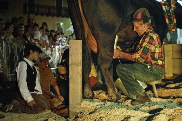 Dopo il saluto da parte delle autorità, infatti, si è svolto l’appuntamento più atteso da tutti; alcuni allevatori, vestiti in abiti tradizionale e aiutati da un folto gruppo di bambini e ragazzi, hanno munto a mano, come avveniva in passato, le tre giovenche portate in piazza, tra l’ammirazione e lo stupore del pubblico. Il latte fresco, poi, è stato usato per la dimostrazione della tecnica della caseificazione e per la produzione di formaggio.