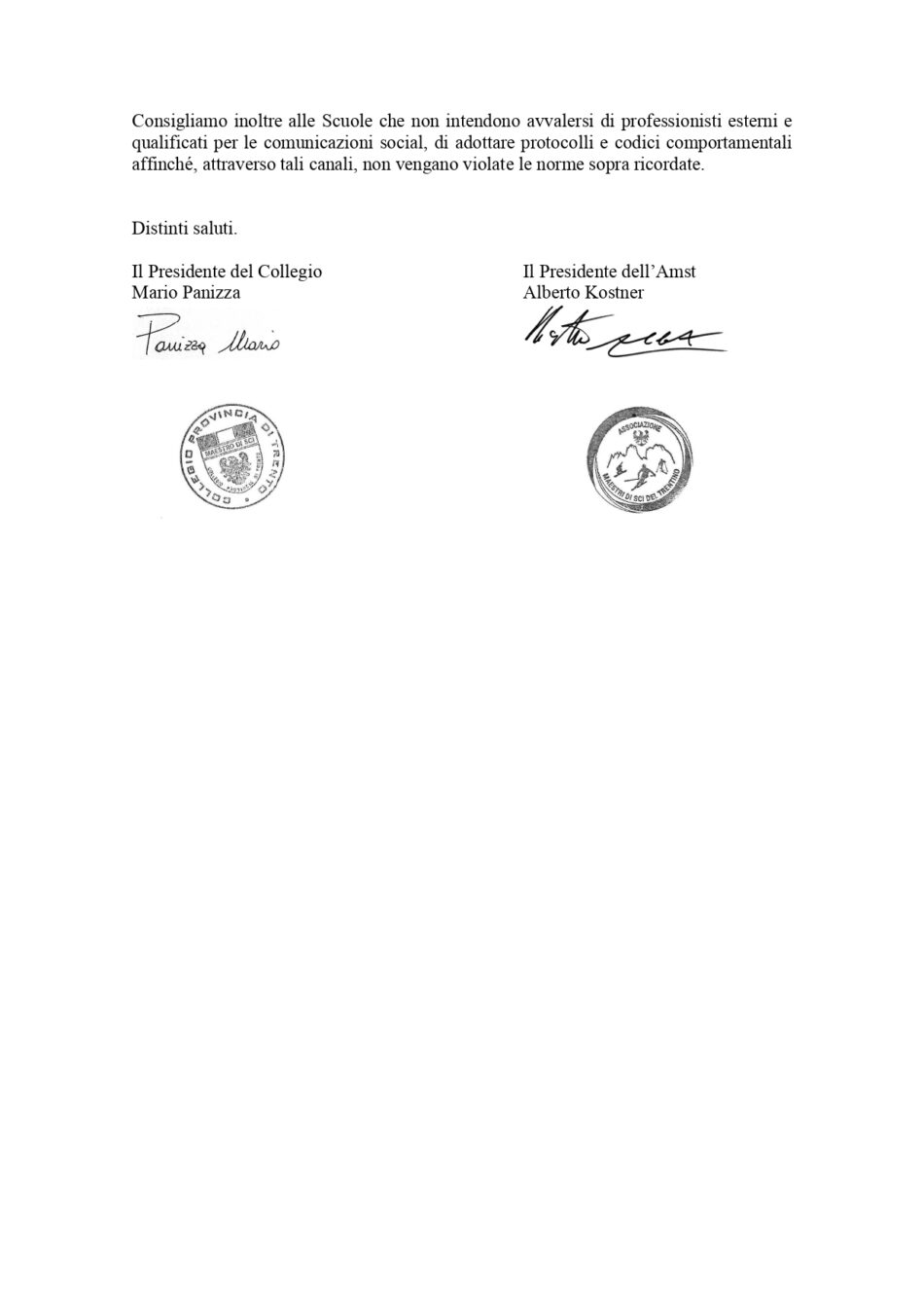 • Lettera inviata ai maestri di sci iscritti all’Associazione Maestri di Sci e Collegio Maestri di sci del Trentino