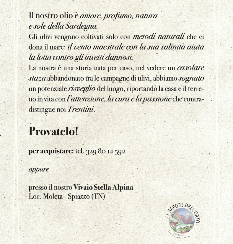 • Lo sapevi che in val Rendena puoi trovare un olio evo che nasce in Sardegna?